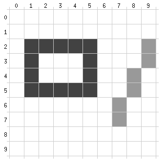Note that all of the pixels drawn by drawRect() are inside the size specified (5*4 pixels). This is different from some toolkits; in Qt the size you specify exactly encompasses the pixels drawn. This applies to all the relevant functions in QPainter.