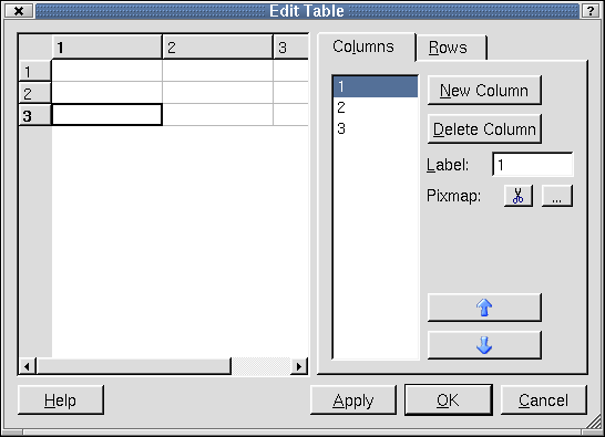 Click Apply to accept changes to the table widget. Click OK to leave the dialog once the changes have been accepted. Click Cancel to leave the dialog without saving any changes.