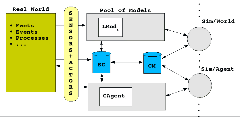 Die Wahrnehmung eines kognitiven Agenten --realisiert als CognitiveAgent-- ist an eine bestimmte simulierte Welt --Simworld-- gebunden. Entsprechend werden auch alle Aktionen des kognitiven Agenten zu der Welt geleitet, aus der die Wahrnehmungen stammen.