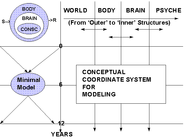 Computermodell zu übertragen Entsprechend der systematischen Aufteilung in (i) Welt und Verhaltensdaten, physiologische (ii) Körper- und (iii) Gehirndaten sowie Daten zum (iv) Bewußtsein, wird versucht werden, aus allen diesen Bereichen Eckwerte zu gewinnen, um ein erstes minimales Modell zu konstruieren (siehe Bild UNTERSUCHUNGS-PLAN). Als Zeitfenster wird die Entwicklung eines Menschen in seinen ersten 12 Lebensjahren zugrunde gelegt. Da sich in dieser Phase Reifungs- und Lernprozesse z.T. noch sehr stark überlappen, wird als Bezugsgröße das sechste Lebensjahr gewählt. Zu diesem Zeitpunkt sind die wichtigsten Reifungsprozesse (speziell des Gehirns) abgeschlossen. Mit Bezug auf die ersten sechs Jahren werden Eckwerten für ein erstes minimales Modell abgeleitet, das dann als Ausgangspunkt für die Rekonstruktion des Verhaltens vom 7. bis zum 12. Lebensjahr dienen soll. Angesichts der Komplexität des Untersuchungsgegenstandes wird der Schwerpunkt der Rekonstruktion in diesem Essay nicht auf der empirischen Detailtreue liegen können, sondern ausschließlich auf der Herausarbeitung eines hochgradig idealisierten holistischen Systems, das erste Grundfunktionalitäten zeigt. Dazu gehört insbesondere die Fähigkeit zur Konzeptualisierung der Welt, zur Koordination mit anderen Agenten sowie die koordinierte Einführung eines gemeinschaftlichen Zeichensystems (Sprache). Es wird hier also keine eigenständige empirische Untersuchung vorgenommen. Vielmehr werden werden die benötigten empirischen Daten und Teiltheorien von vorliegenden Untersuchungen übernommen. Aufgrund der großen Unterschiedlichkeit der in der empirischen Forschung verwendeten Methoden sowie aufgrund der noch sehr bruchstückhaften empirischen Ergebnisse kann diese Modellbildung nur als eine erste Annäherung verstanden werden. Erst die weitere zukünftige Arbeit und Diskussion kann möglicherweise jene Präzision hervorbringen, die man sich aus wissenschaftlicher Sicht wünscht. |